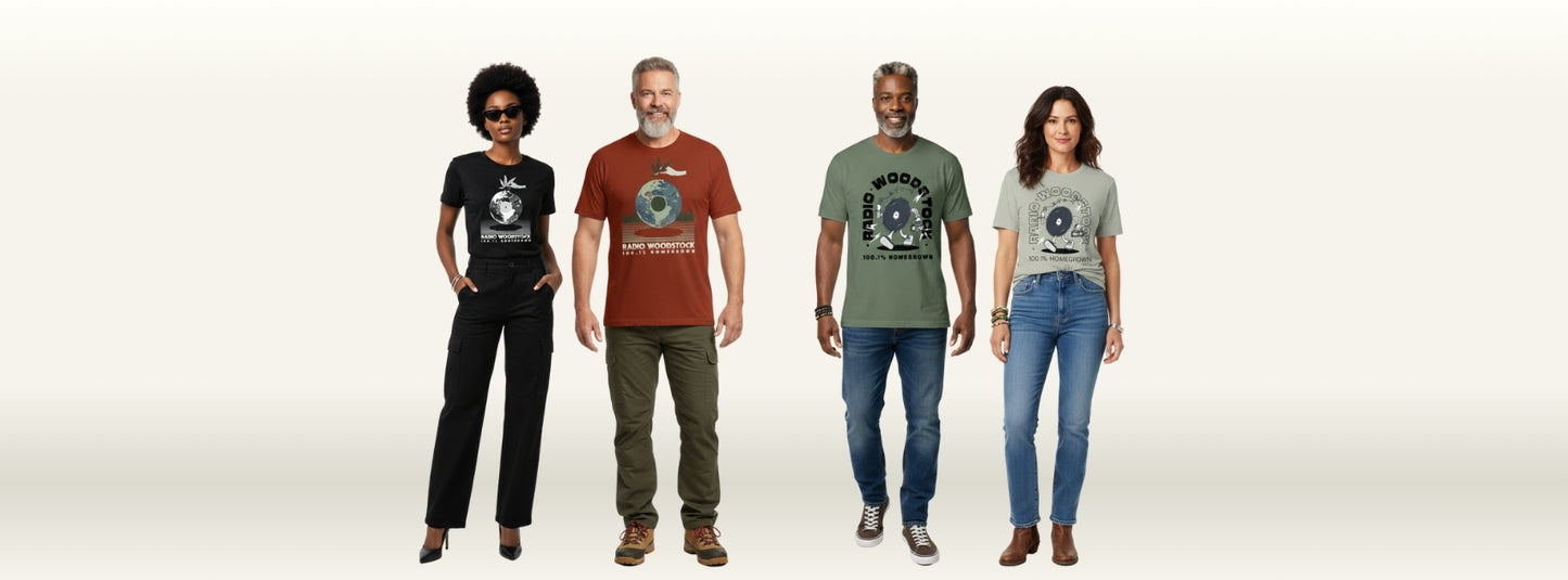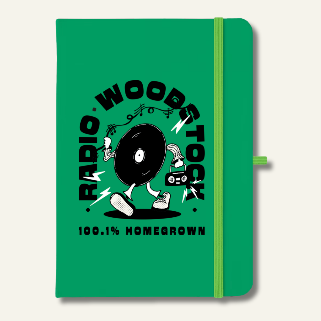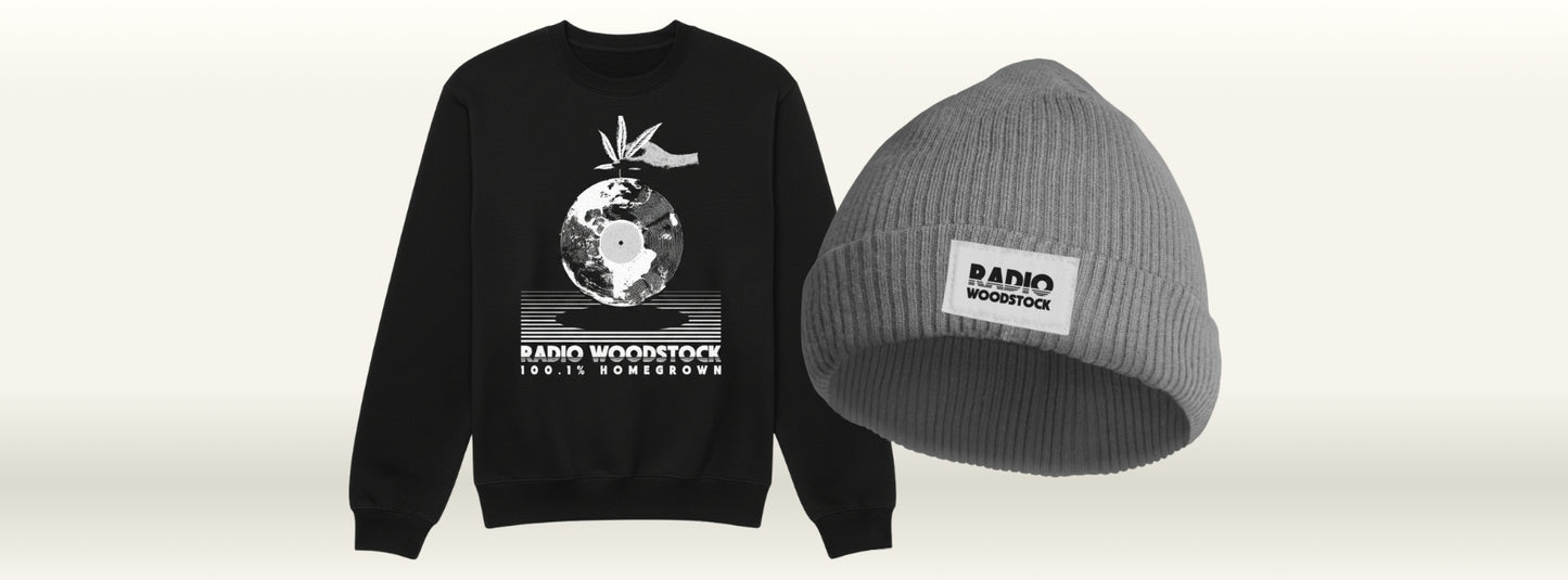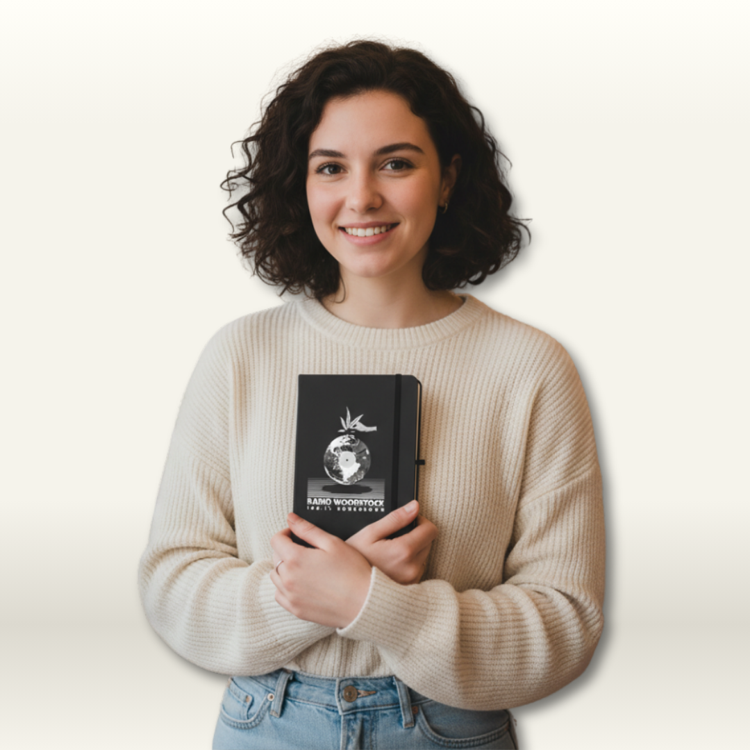Our beanie, tote bag, and notebooks bring everyday essentials to life with the same creativity and independent spirit that defines Radio Woodstock.